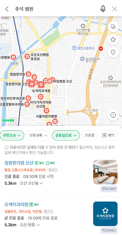네이버·카카오맵에서 ‘추석 병원’, ‘연휴 응급실’, ‘문 여는 약국’ 등으로 검색합니다.